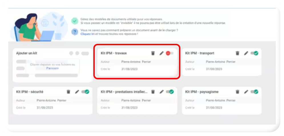 - Pour ajouter un nouveau kit de réponse, accédez à l’onglet « Mes réponses » > « Mémoires techniques », à partir du menu général.