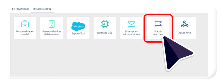 • Et cliquez sur l’onglet « Statuts des marchés » :