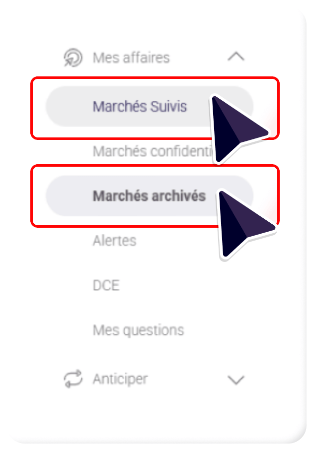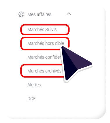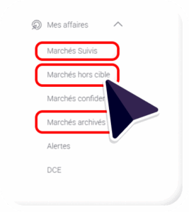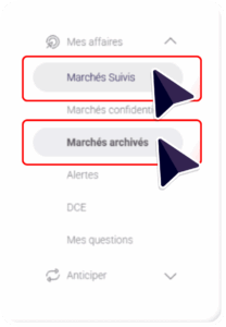 • Filtres persistants, entre « Marchés Suivis » et « Marchés Archivés ».