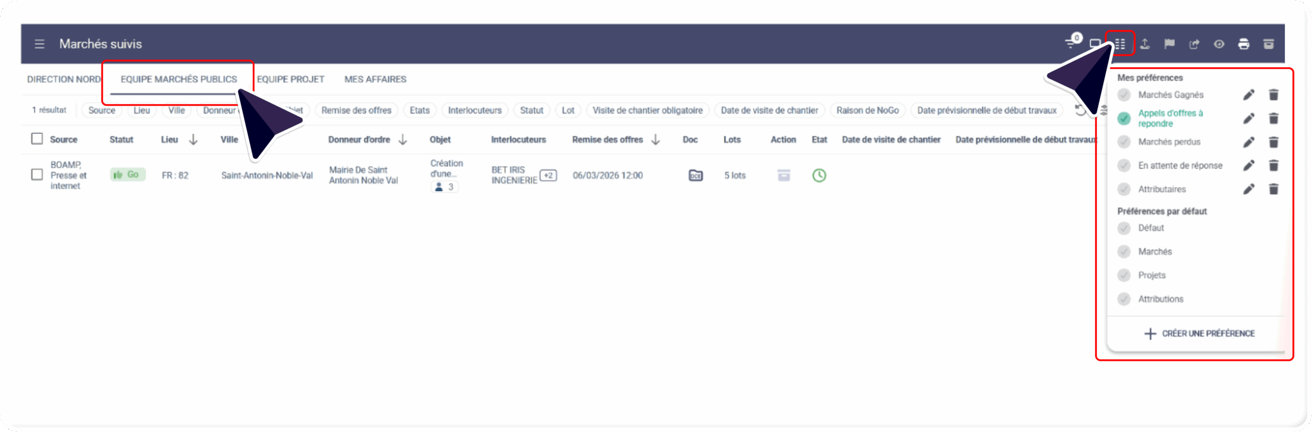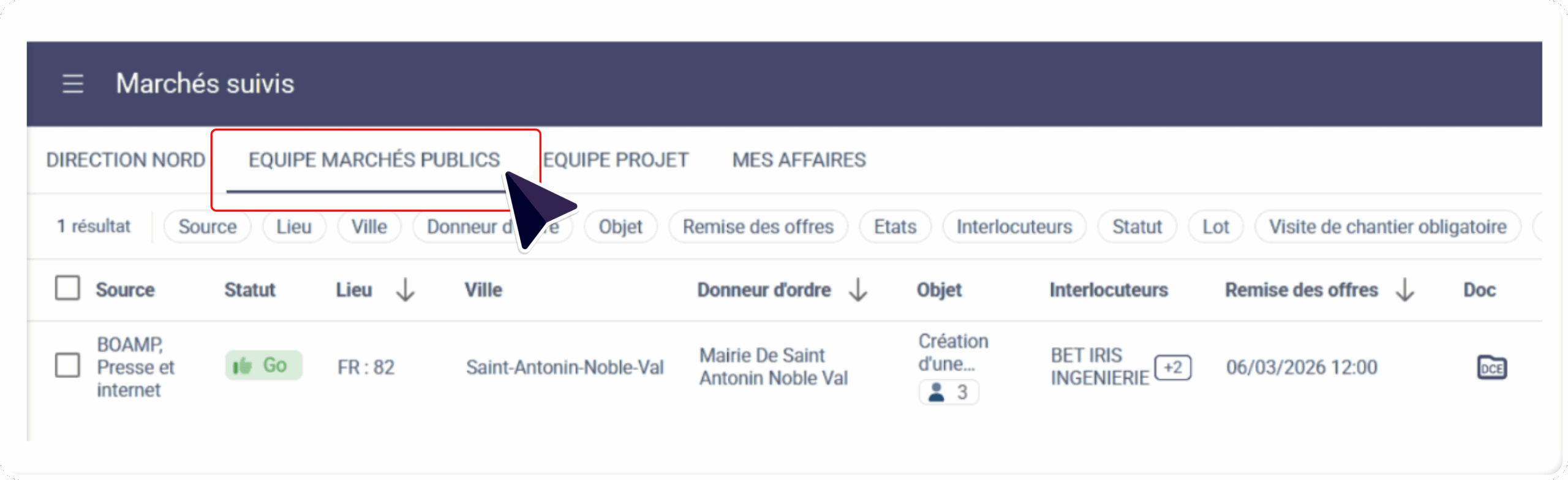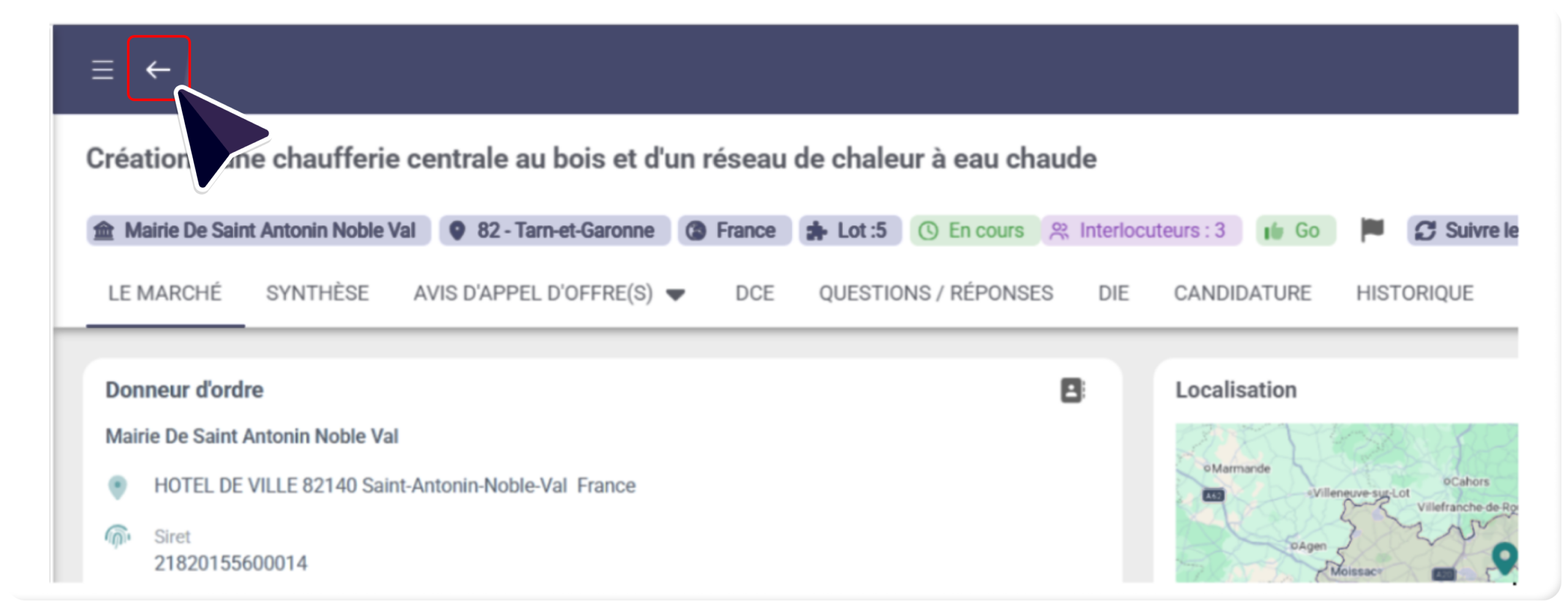 Une mise à jour a été déployée, pour permettre à l’utilisateur de revenir directement à la liste des marchés de l’équipe, dans laquelle se trouve le marché consulté :