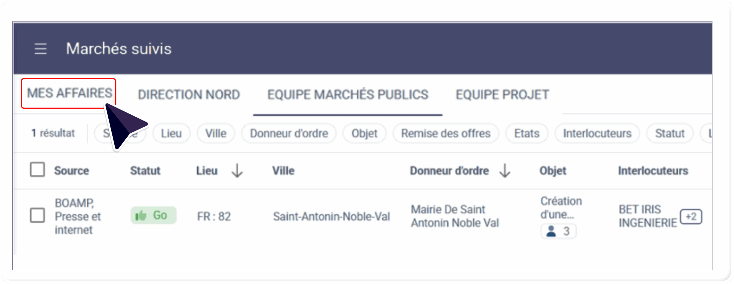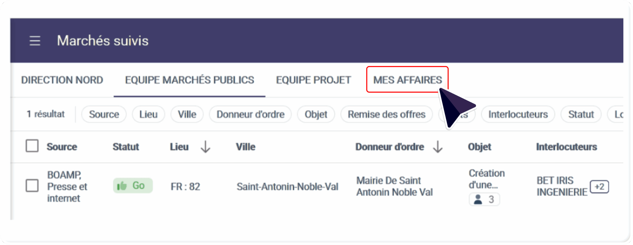 L’onglet « Mes Affaires », était initialement positionné après les équipes :