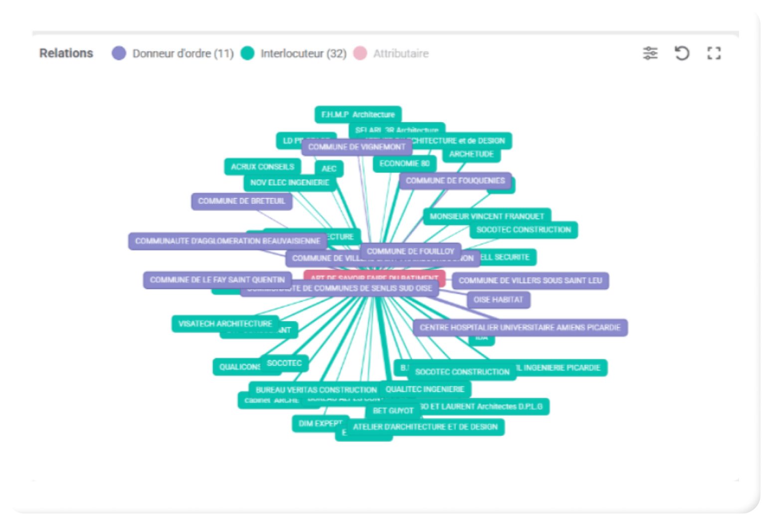 - Violet : relations de cet établissement avec les donneurs d’ordres