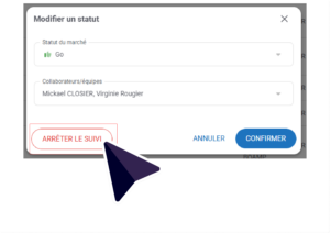 - Le bouton « Arrêter le suivi » permet de supprimer définitivement un statut d’un marché :