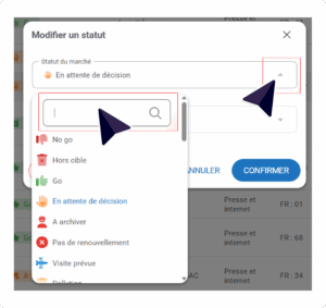 - L’utilisateur accède alors à une pop-up et peut modifier le statut :