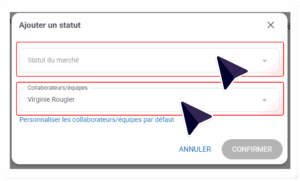 ⚠️ Si les collaborateurs et/ou équipes sélectionnés sont strictement identiques à ceux d’un statut déjà existant sur le même marché, alors le système met à jour le statut existant correspondant (au lieu d'en créer un nouveau).