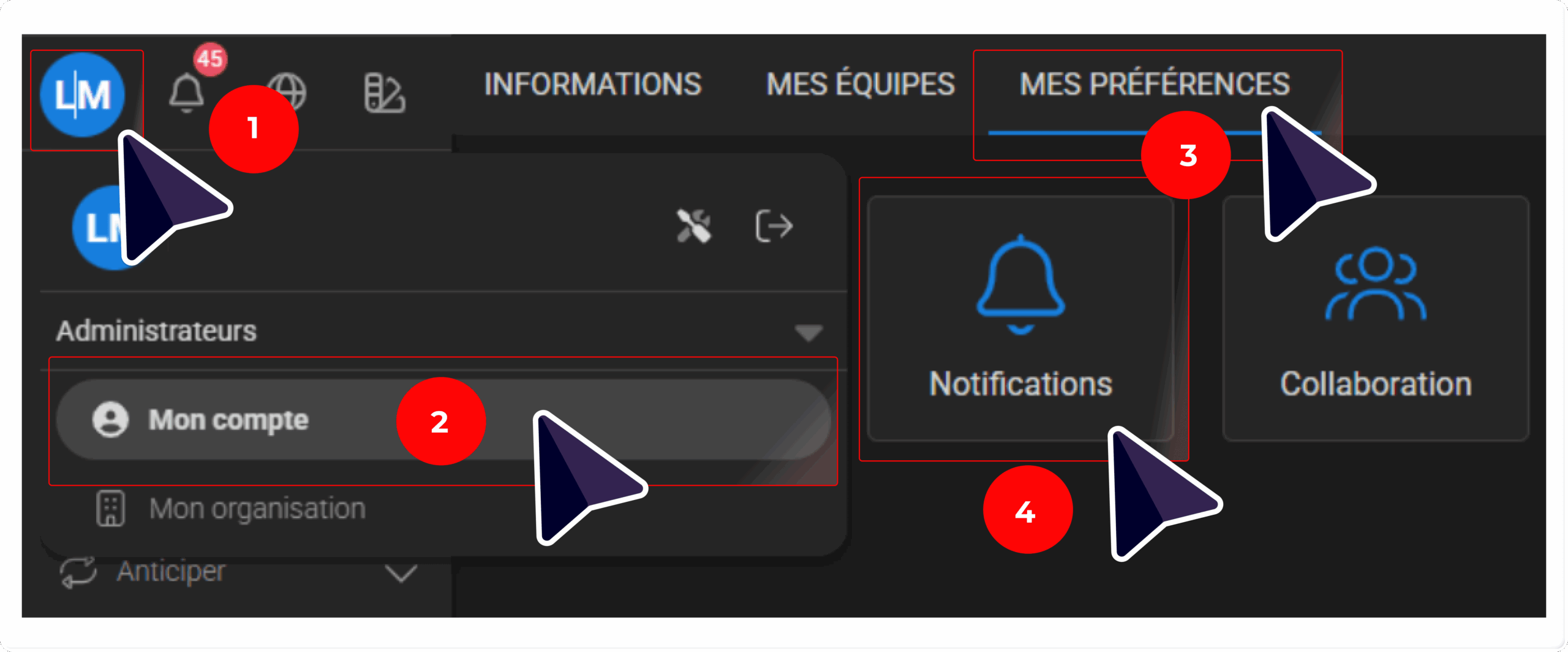 • Chaque utilisateur peut désactiver ces notifications, via : Mon compte > Mes préférences > Notifications.