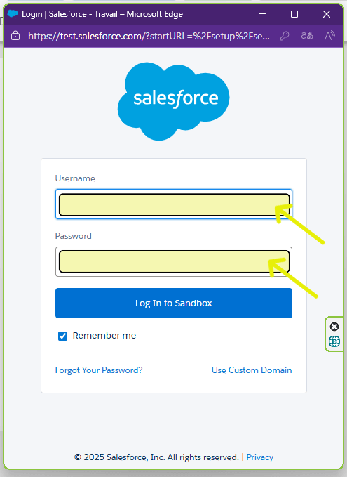 - Une pop-up apparaît, pour vous permettre de vous identifier à votre CRM :