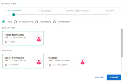 💡 Conseil : Pour garantir la qualité des données, privilégiez l’export de contacts « siretisés » et standardisés, afin d’éviter d’altérer la base de votre CRM.