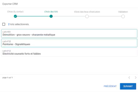 - Puis, choisissez le, ou les lot(s), que vous souhaitez retrouver dans votre CRM :