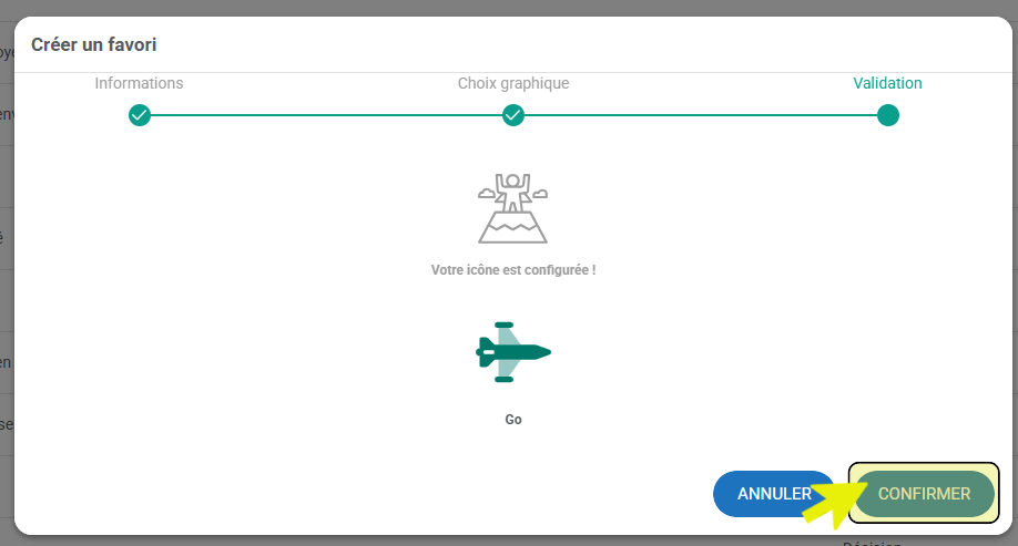 • Puis, cliquez sur le bouton « Confirmer », pour enregistrer la création de votre favori (statut) :