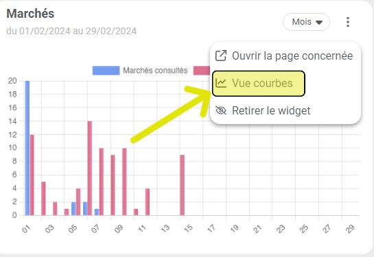 - Ouvrir la page concernée, afin de voir l’ensemble des informations du widget (pour cet exemple, vous accédez ainsi à l’ensemble de vos dernières alertes)