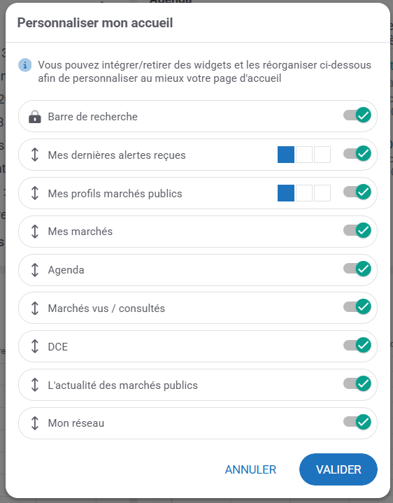 - Déplacer vers le haut ou le bas chaque widget, afin de les afficher dans l’ordre souhaité
