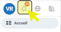 • Pour accéder à vos notifications, cliquez sur l’icône cloche, en haut à gauche de votre plateforme :