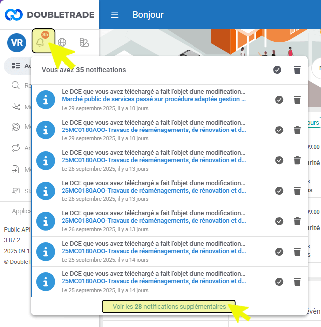 🎯 L’objectif étant pour l’utilisateur de pouvoir s’assurer d’avoir une vision exhaustive de tous changements sur les marchés / projets qu’il suit
