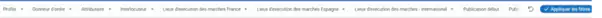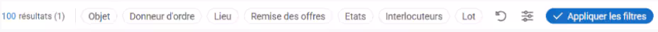 - Cliquez sur l’un des critères disponibles, dans la barre du menu haut, pour vous permettre d’effectuer un filtrage :