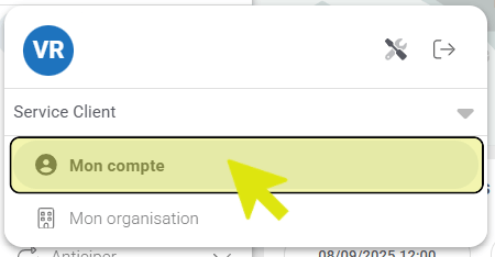- Pour accéder à votre espace « Mon compte », il suffit de cliquer en haut à gauche de votre plateforme Insight, sur vos initiales (ou sur votre photo personnelle) :