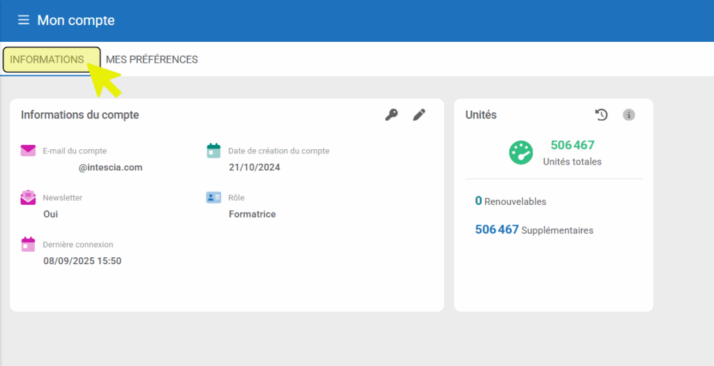 - Dans l’onglet « Informations », vous retrouvez toutes vos données personnelles, relatives à votre compte Insight :