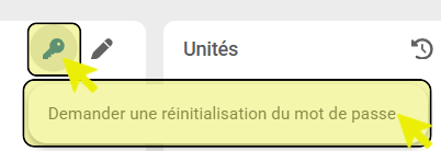 - En cliquant sur l’icône « clé », vous avez la possibilité de demander une réinitialisation de votre mot de passe. Cliquez sur le texte du même nom :