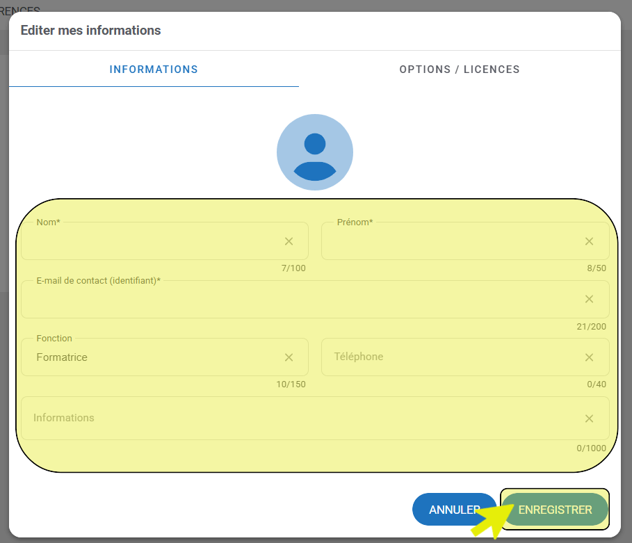 - En cliquant sur l’icône « crayon », vous avez la possibilité d’éditer vos informations personnelles :