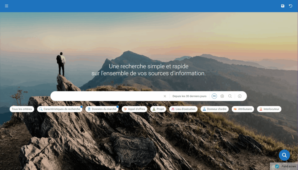 - Pour rechercher un marché en cours avec le moteur de recherche Insight, commencez par saisir l’objet du marché dans la barre de recherche :