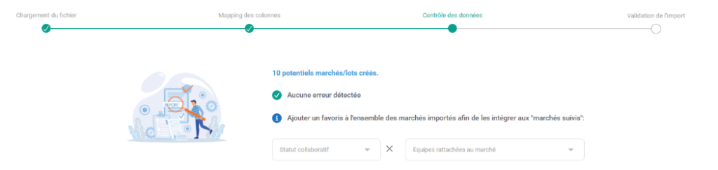 - Aperçu des lignes valides et estimation du nombre de lots/marchés crées.