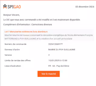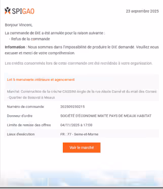 « Annulation de la commande de DIE sur Spigao : objet du marché  »