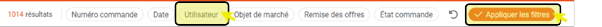 • Par défaut, la page présente vos commandes. Vous pouvez donc ouvrir les critères pour voir apparaître les commandes de l’ensemble de votre équipe.