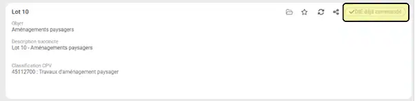 • Depuis l’onglet « Marché », Il faut faire défiler les lots pour retrouver celui concerné :