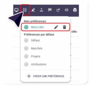 - Cette mise à jour n’est pas rétroactive. Les marchés ajoutés à vos marchés suivis, avant la mise en place de cette évolution, ne permettront donc pas l’affichage des mots-clés.